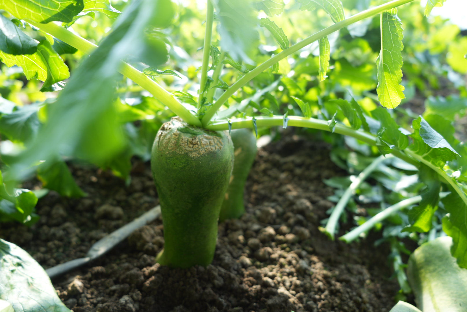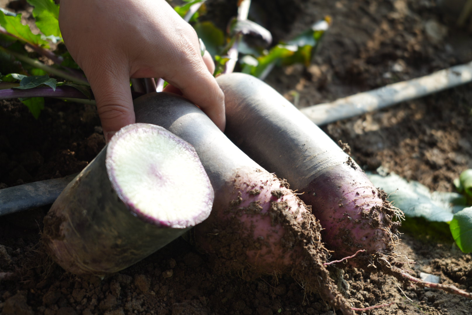 葛沽鎮(zhèn)實(shí)驗(yàn)大棚里,綠纓搖曳,蘿卜飄香。每一壟蘿卜都有定制的標(biāo)牌,清晰地展示著種源、型號(hào)和播種時(shí)間等信息。參展商們就地拔起蘿卜切開展示,現(xiàn)場(chǎng)品鑒交流。